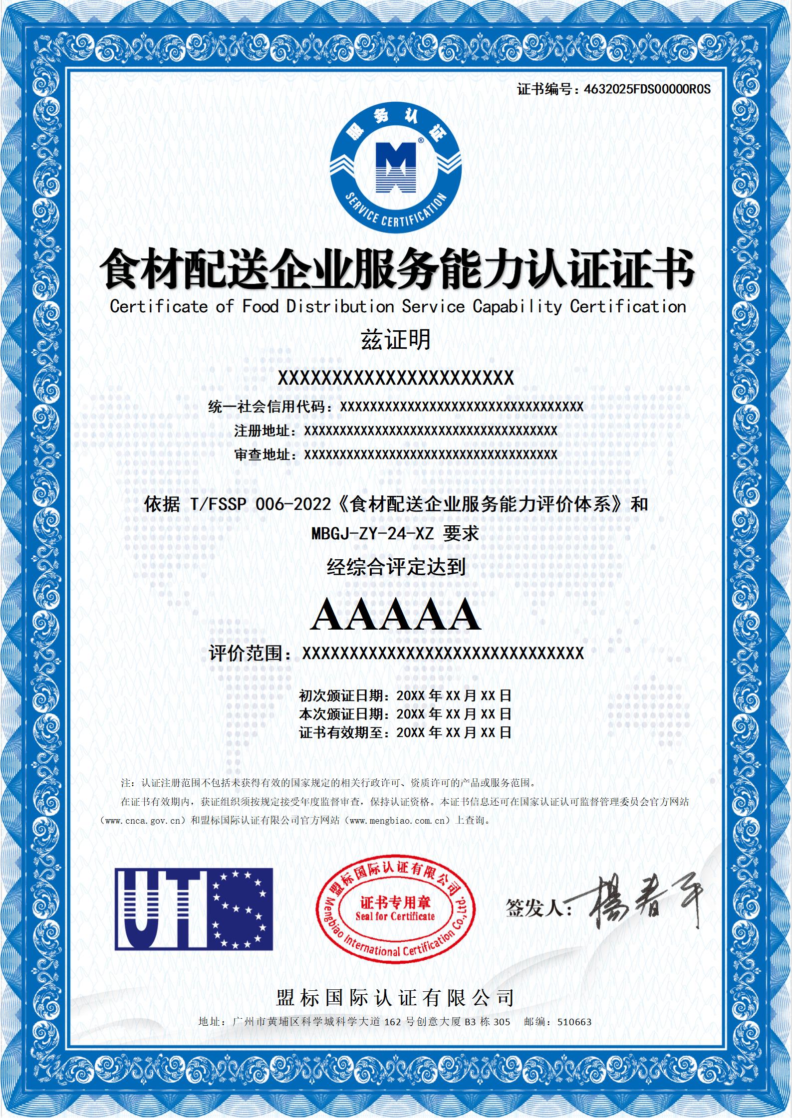 食材配送企業(yè)服務(wù)能力認(rèn)證-樣版